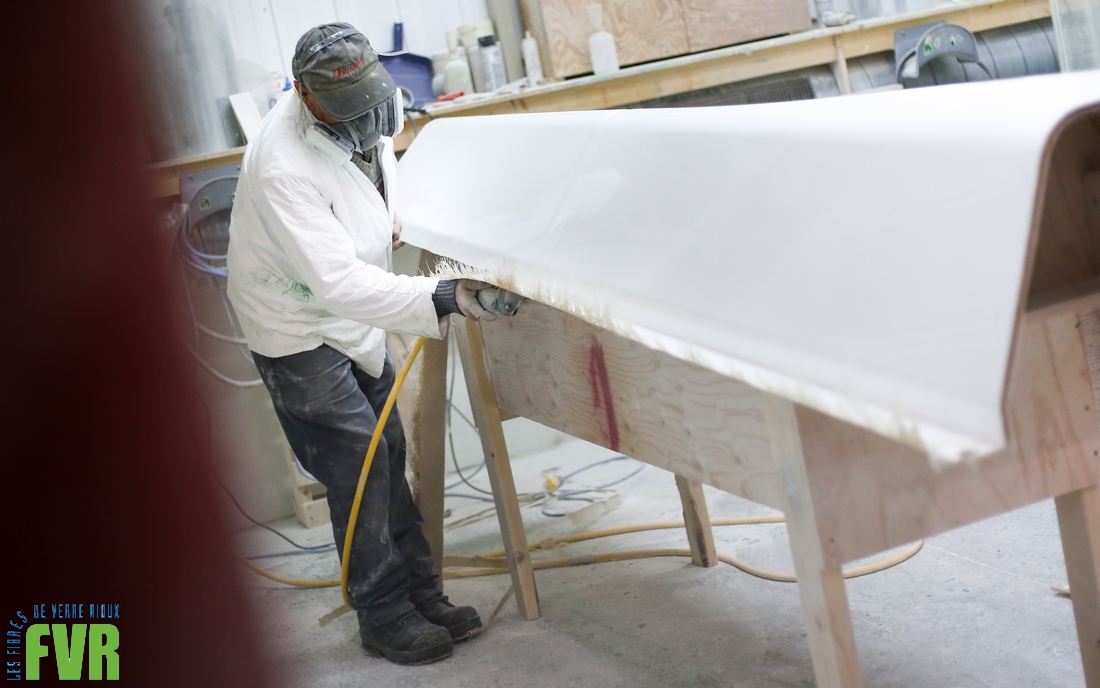 - Découpe de pièces en fibre de verre à l'aide d'une scie manuelle au diamant